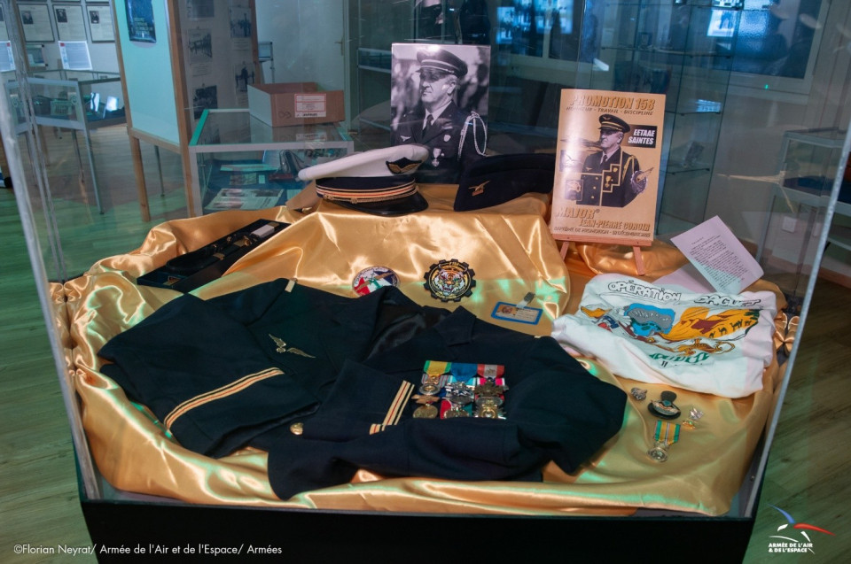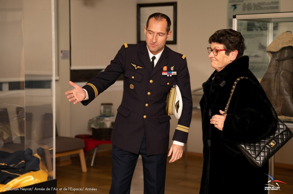 La situation exceptionnelle a conduit les autorités de l’EETAAE à permettre au petit-neveu d’être présent au moment de l’accueil de la famille de Jean-Pierre en salle tradition « Michel RIBOT (P3) - Les écuyers du ciel » sur la BA 722.