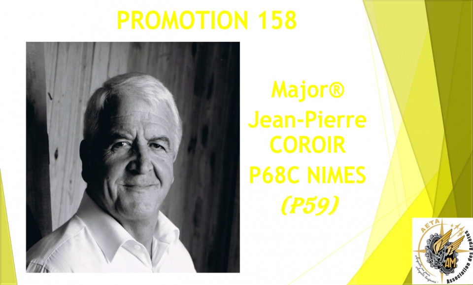 Le jeudi 18 décembre, sur décision du ministre des Armées et des Anciens Combattants, la Promotion 158 de l’École d’Enseignement Technique de l’Armée de l’Air et de l’Espace prenait le nom de baptême « Promotion Major Jean-Pierre COROIR » au cours d’une cérémonie présidée par le Général de Division Aérienne Sébastien Mazoyer, adjoint au Directeur des Ressources Humaines de l’Armée de l’Air et de l’Espace et en présence de nombreuses autorités civiles et militaires.