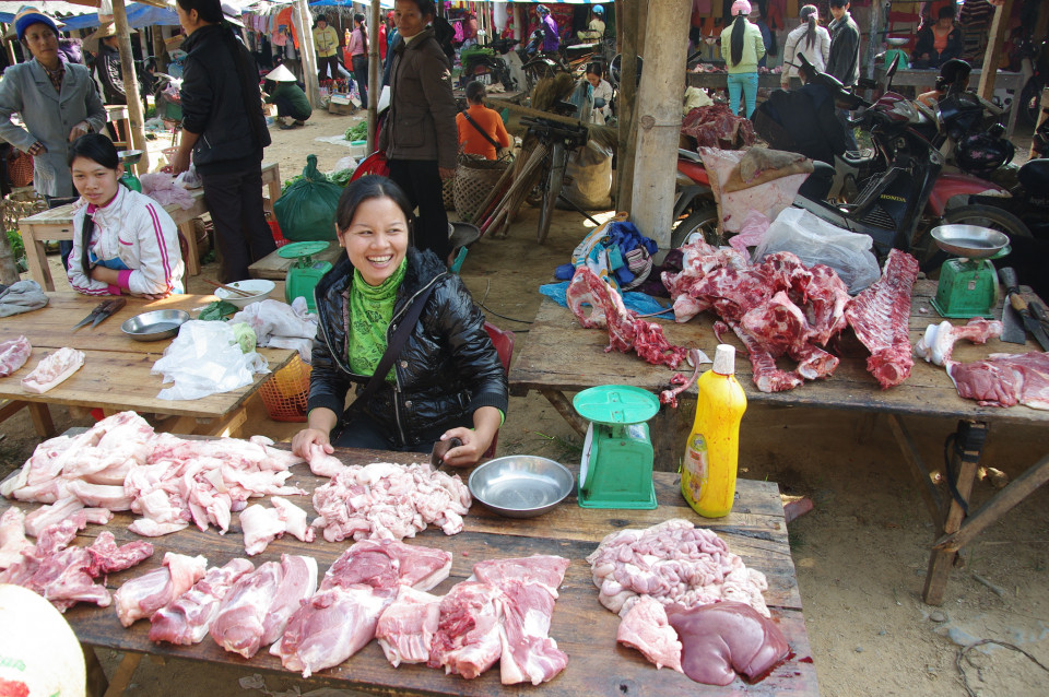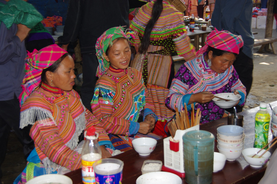 06H30 nous arrivons à destination après une nuit chaotique dans le TGV vietnamien (lire très grande vibrations), le petit déjeuner sera très apprécié dans un café local, mais déjà il faut reprendre la route pour Bac ha ; petit village renommé pour son marché très coloré, berceau d’une mosaïque d’ethnies ;le marché de Bac Ha est le rendez-vous hebdomadaire des peuples du haut Tonkin qui viennent y échanger des marchandises on y côtoie des costumes chatoyants et d’éblouissantes broderies .Après le déjeuner nous nous rendons au palais de roi des Hmongs, situé en plein centre de la ville sa construction a duré 7 années de 1914 a1921.Nous terminerons cette journée par une balade dans la campagne environnante ce qui nous permettra de faire de belles rencontres avec les habitants de cette magnifique région.