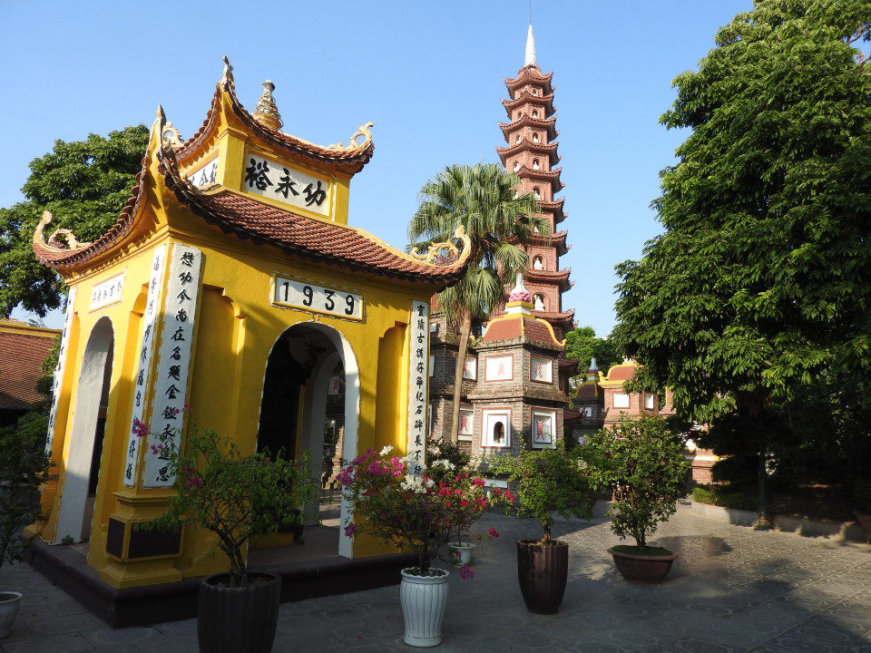 Ce matin il pleut toujours et nous rejoignons l’aéroport ou nous devons décoller pour HANOI à 09h15. Le vol jusqu'à HANOI est mouvementé car nous essuyons une queue de typhon. Enfin nous nous posons à HANOI 1h plus tard. Nous découvrons avant de nous rendre à l’hôtel le lac de l’Ouest ou grand lac ainsi que la pagode de TRAN- QUOC .Installation dans les chambres puis visite des quartiers commerçants de la ville (rue de la soie)! Vers 18h nous assistons au spectacle étonnant des marionnettes sur l’eau, avant de regagner le restaurant pour un dîner fort apprécié.