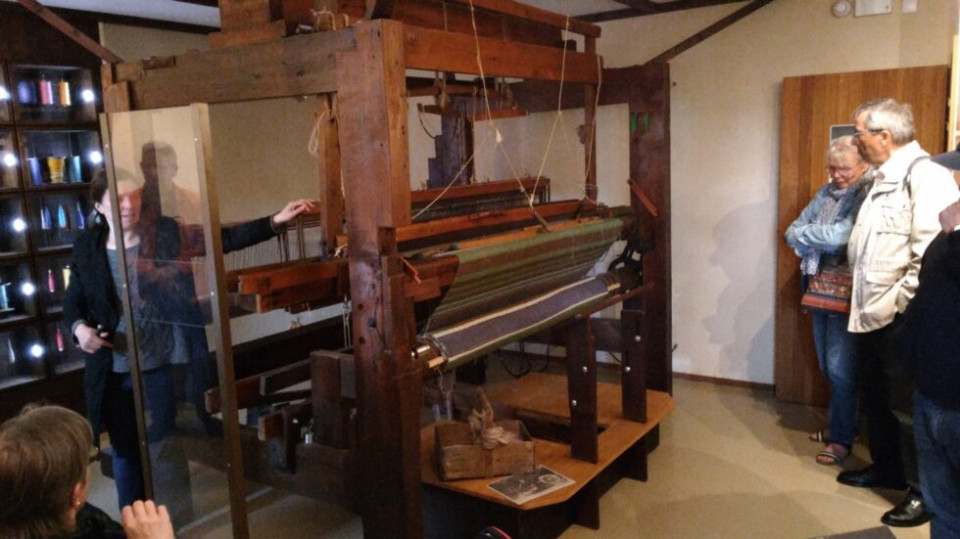 Nous avons ensuite la démonstration de l’utilisation d’un métier à tisser manuel par une tisserande professionnelle, venue nous décrire ce travail et l’utilisation de cet outil si particulier.