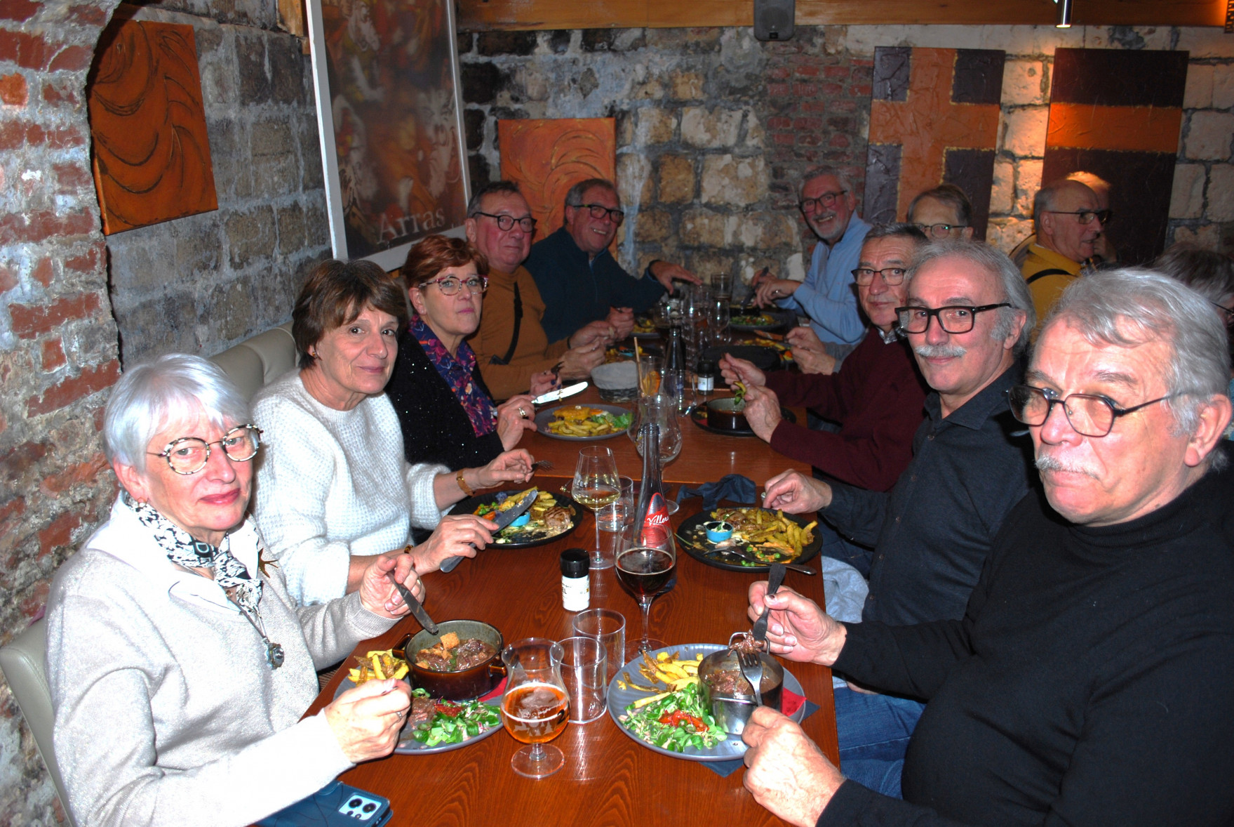 Leur journée a commencé par un bon repas au « Petit Rat Porteur » dans la cave de ce restaurant. L’endroit typique de la région est une jolie cave de brique rouge où notre présence de 18 personnes n’est pas passée inaperçue.