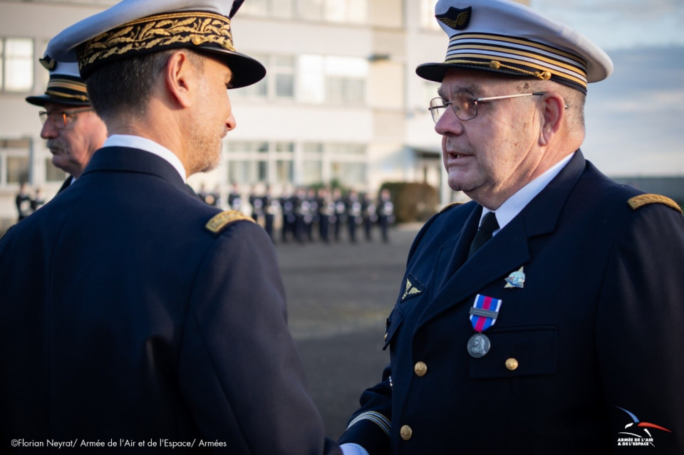 A l’occasion de la cérémonie du baptême de la 158ème promotion de l’École d’Enseignement Technique de l’Armée de l’Air et de l’Espace, le jeudi 18 décembre 2025, qui s’est vu attribuer le nom d’un arpète et aviateur d’exception « Major® Jean-Pierre COROIR », le lieutenant-colonel® Jean-Yves LE GUELVOUIT, membre du conseil d’administration de l’AETA, responsable du groupe de travail devoir de mémoire - parrains, a été décoré de la médaille des réservistes volontaires de défense et de sécurité intérieure échelon argent.