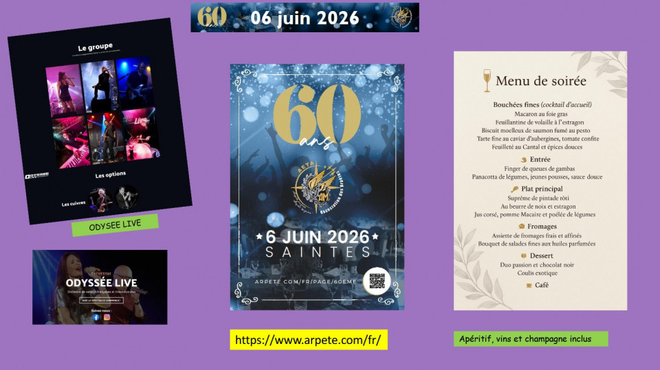 Pour tout savoir et réserver votre soirée, accéder à la page du 60ème anniversaire de l'AETAAccès à la page du...